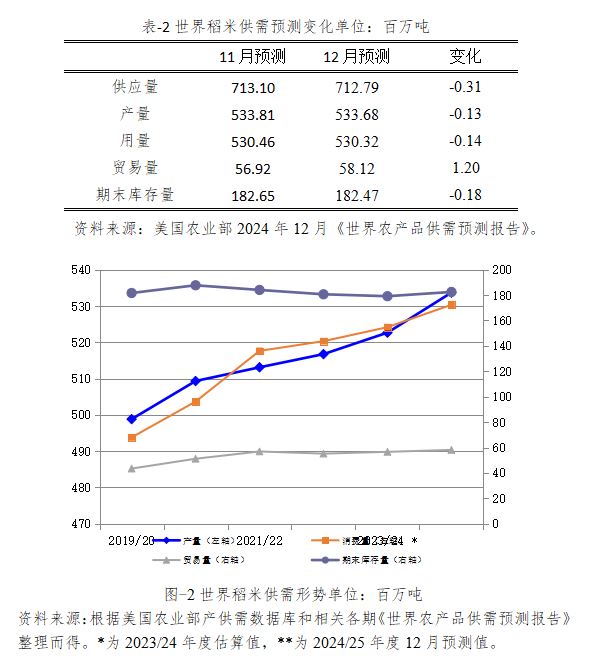 2024/25年度世界稻米贸易量预计达创纪录的5812万吨,较2023/24年度估算值增加152万吨,比上月预测值上调120万吨。主要原因是柬埔寨、越南、泰国和巴西出口量增加。