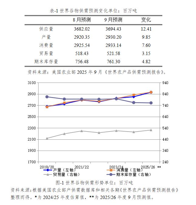 2025/26年度世界谷物消费量将达29.33亿吨,较2024/25年度估算值增加4783万吨,比上月预测值上调760万吨。