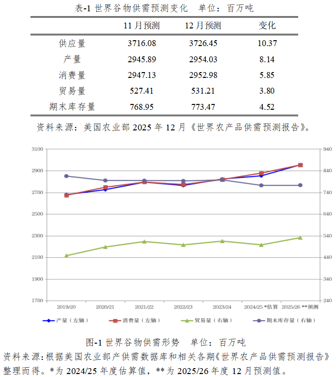 2025/26年度世界谷物产量将达29.54亿吨,较2024/25年度估算值增加10112万吨,比上月预测值上调814万吨。