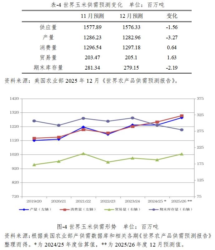 2025/26年度世界玉米供应量预计为15.76亿吨,较2024/25年度估算值增加3027万吨,比上月预测值下调156万吨。